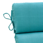 Introduce a gorgeous turquoise blue in your oasis with this outdoor chair cushion. Its solid blue pattern will freshly accent any outdoor area with a peaceful aquatic feel. The durable polyester fabric has a linen-like texture and is fade resistant. Additional features of this outdoor chair cushion include rounded corners, 14" ties and recycled polyester fill with a sewn seam closure.