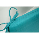 Introduce a gorgeous turquoise blue in your oasis with this set of two outdoor seat cushions. Their solid blue pattern will freshly accent any outdoor area with a peaceful aquatic feel. The durable polyester fabric has a linen-like texture and is fade resistant. Additional features of these outdoor seat cushions include rounded corners, 14" ties and recycled polyester fill with sewn seam closures. Also suitable for indoor use.