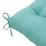 Create a bright, cool escape with this large outdoor bench cushion. With a simple look, the radiance of the refreshing shade of aqua fabric delivers fresh style with a sense of calmness. Made of 100% polyester. Additional features of this large outdoor bench cushion include tufted detailing, 14" ties and recycled polyester fiber fill with a sewn seam closure. Also suitable for indoor use.