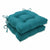 Bring a clean, elegant look to your porch or patio with the on-trend fashionable beauty of this set of two outdoor tufted chair pads. In a luxurious shade of teal, their fade-resistant fabric has a beautiful linen texture that's inviting. Additional features of these outdoor tufted chair pads include 14" ties to secure the cushions to your furniture and recycled polyester fiber fill with sewn seam closures. Also suitable for indoor use in kitchen and dining areas.