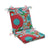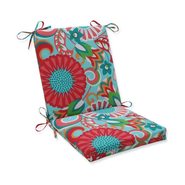 Joyful vibrance of a suzani inspired pattern makes this outdoor chair cushion a delightful addition to your outdoor escape. In shades of coral and spring green with a pop of orange on an aqua ground, this stunning cushion ushers in new, irresistible style. Made of 100% polyester. Additional features of this outdoor chair cushion include square corners, 14" ties to secure the cushion to your furniture and recycled polyester fill with a sewn seam closure.