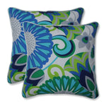 Joyful vibrance of a suzani inspired pattern makes this set of two outdoor throw pillows a delightful addition to your outdoor escape. In shades of blue, aqua and green with a pop of gray on a white ground, these stunning pillows usher in new, irresistible style. Made of 100% polyester. Additional features of these outdoor throw pillows include white coordinating welt cords for a beautiful finish and recycled polyester fiber fill with sewn seam closures. Also suitable for indoor use.