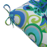 Joyful vibrance of a suzani inspired pattern makes this outdoor bench cushion a delightful addition to your outdoor escape. In shades of blue, aqua and green with a pop of gray on a white ground, this stunning cushion ushers in new, irresistible style. Made of 100% polyester. Additional features of this outdoor bench cushion include tufted detailing, 14" ties and recycled polyester fiber fill with a sewn seam closure. Also suitable for indoor use.