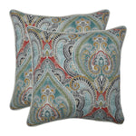 Make your patio the epitome of elegance with the paisley pattern of this set of two outdoor decorative pillows. Their intricate design is in lovely shades of coral, turquoise, green, yellow and gray, which emphasize every detail for a worldly look. Additional features of these outdoor decorative pillows include white contrasting welt cords for a clean finish and recycled polyester fiber fill with sewn seam closures. Also suitable for indoor use.