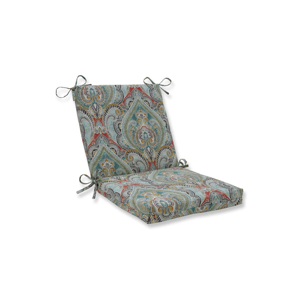 Make your patio the epitome of elegance with the paisley pattern of this outdoor chair cushion. Its intricate design is in lovely shades of coral, turquoise, green, yellow and gray, which emphasize every detail for a worldly look. Additional features of this outdoor chair cushion include square corners, 14" ties and recycled polyester fill with a sewn seam closure.