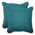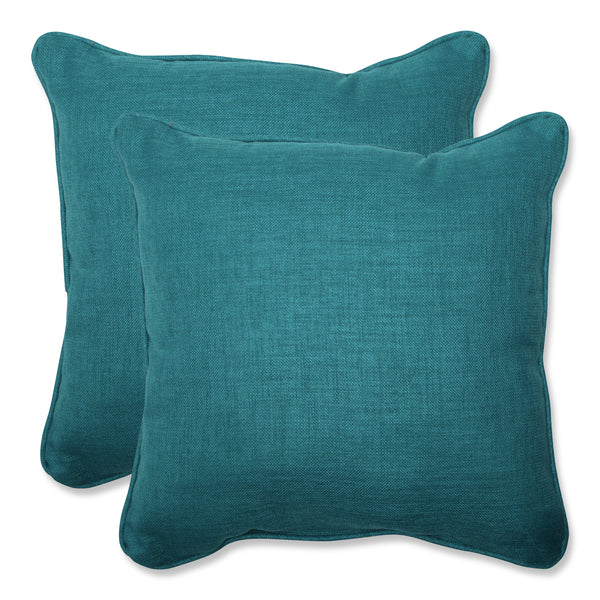 Bring a clean, elegant look to your porch or patio with the on-trend fashionable beauty of this set of two outdoor decorative pillows. In a luxurious shade of teal, their fade-resistant fabric has a beautiful linen texture that's inviting. Additional features of these outdoor decorative pillows include self welt cords for a clean finish and recycled polyester fiber fill with sewn seam closures. Also suitable for indoor use.