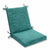 Add subtle tropical flair to your patio or porch with this outdoor chair cushion. In mixed shades of blue and green, its fade-resistant fabric has the look of a heavy woven-like texture. Additional features of this outdoor chair cushion include square corners, 14" ties and recycled polyester fill with a sewn seam closure.