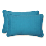 Enjoy the cool, relaxed look of this set of two outdoor lumbar pillows. In a shade of bright blue, their textured fabric is durable and fade resistant, which is perfect for creating a welcoming look that transcends time. Additional features of these outdoor lumbar pillows include self welt cords for a clean finish and recycled polyester fiber fill with sewn seam closures. Also suitable for indoor use.