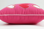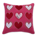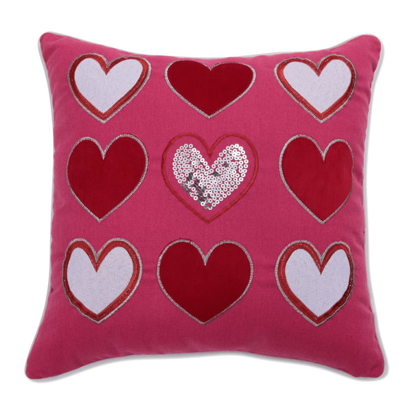 Put a little heart in your décor. Delivering much love, this mod accent pillow is vibrantly dyed hot pink and playful hearts are embroidered and appliqued atop the pillowscape. In varying textures, material and colors, the iconic symbols take center stage creating texture, depth and a hint of glam for any space you love. Love it so much, you can display it throughout the year. Zippered with insert included.