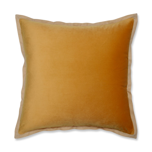 • In solid yellow-gold velvet with a coordinating cotton flange in a shade of light tan