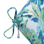 The mystique and beauty of the tropics comes to life with this outdoor chaise lounge cushion. Incorporating abstract pineapples and tropical foliage, it is printed in tranquil shades of blue and green with hints of yellow atop a white ground. You'll love creating the look of a tropical paradise in your own backyard. Additional features of this outdoor chaise lounge cushion include 14" ties to secure the cushion to your furniture, square corners and recycled polyester fill with a sewn seam closure.