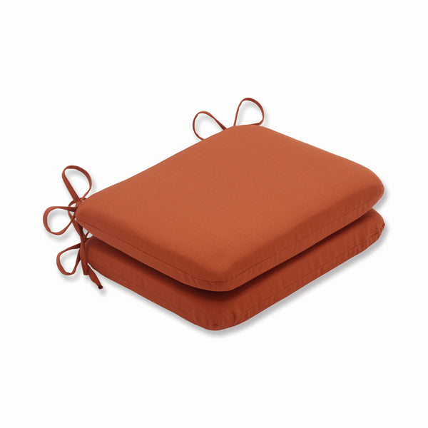 Spice up the look of your patio or porch with this set of two outdoor seat cushions in the rich color of cinnamon. Their highly textured fabric is durable, fade resistant and in a light shade of brown, which coordinates with other decor. Additional features of these outdoor seat cushions include rounded corners, 14" ties and recycled polyester fill with sewn seam closures. Also suitable for indoor use.