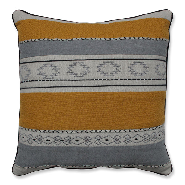 The fresh, casual look of this throw pillow is definitely detail-oriented. The combination of Dhurrie yarn with appliqued stripes and embroidered motifs creates great dimension and visual interest. The yellow, gray black and natural color combination is perfect for all seasons. Additional features include a contrasting black welt cord for a beautiful finish and recycled polyester fiber fill with a sewn seam closure.