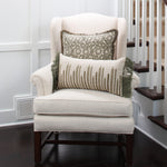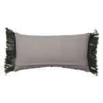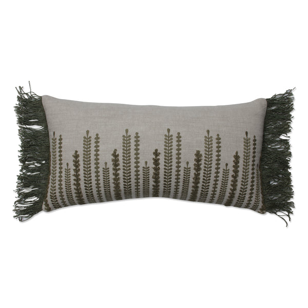 Offering elegance with modern sophistication, this rectangular throw pillow pairs well with any decor. The green chenille and straight stitched embroidery brings forth a dimensional style on a natural textured ground. Pillow ends are finished with a 3" coordinating, mixed-yarn fringe, which creates unique textural interest. Additional features of this lumbar pillow include a 100% cotton canvas back and a recycled polyester fiber fill insert with a zipper closure.