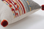 Create a captivating look in any decor with this trendsetting lumbar pillow. Filled with intricate details, the natural cotton ground is embroidered, appliqued and printed with a unique design to showcase its range of rich colors and multiple textures. In each pillow corner, commingled pom poms complete the look. Additional features include a knife edge seam for a clean finish and recycled polyester fiber fill with a sewn seam closure.