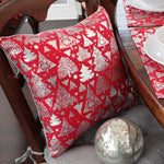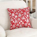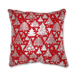 It's beginning to look a lot like Christmas as this decorative pillow sets a jolly tone for your holiday home. Printed with a metallic silver ink, the iconic tree silhouettes stand out from the Christmas red ground creating striking and sophisticated festive ambience. Additional features of this throw pillow include a metallic silver welt cord and recycled polyester fiber fill with a sewn seam closure.