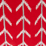 Single-sided: Geometric pattern in white and silver Lurex embroidery on a red ground
