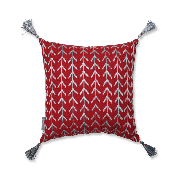 This simple but elegant decorative pillow is a perfect addition to your holiday decor. The Christmas red ground is a perfect contrast to the white and silver Lurex embroidery that creates an updated geometric pattern. A silver tassel on each corner completes the look nicely! Additional features of this Christmas pillow include a clean, knife-edge seam and recycled polyester fiber fill with a sewn seam closure.