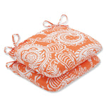 Feel the heat of summer with this lusciously fruity orange and crisp white paisley pattern that adds bright color to your festive poolside. Lazy twirls of paisley mixed with leaves and feather shapes give a playful tribal feel. This pair of outdoor seat cushions is perfect for fun afternoons in the sun. Additional features include round corners, 14" ties and recycled polyester fill with a sewn seam closure. Also suitable for indoor use.