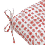 The modern pattern of this large outdoor tufted bench cushion resembles a watercolor dot. This essential print has layered shades of coral atop an off-white ground that creates printed dimension and texture. It's a must-have addition that plays well with all patterns and prints. Additional features of this large outdoor bench cushion include tufted detailing, 14" ties and recycled polyester fiber fill with a sewn seam closure. Also suitable for indoor use.