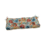 A festival of flowers, foliage and berries brings a style of natural wonder to your patio with this outdoor bench cushion. In a neutral sandy backdrop, the painterly design pops in shades of deep red, orange, green and blue. Features include tufted detailing, 14" ties, recycled polyester fiber fill and a sewn seam closure. Also suitable for indoor use.