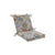 The elegance of this outdoor chair cushion in a lively paisley and floral design is perfect for accenting a patio. Its vivid shades of red, aqua, green, orange, yellow and indigo blue bring life to the scene through artful beauty. Additional features of this outdoor chair cushion include square corners, 14" ties and recycled polyester fill with a sewn seam closure.