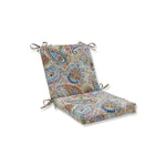 The elegance of this outdoor chair cushion in a lively paisley and floral design is perfect for accenting a patio. Its vivid shades of red, aqua, green, orange, yellow and indigo blue bring life to the scene through artful beauty. Additional features of this outdoor chair cushion include square corners, 14" ties and recycled polyester fill with a sewn seam closure.