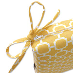 Update any outdoor area with this set of two on-trend geometric patterned outdoor oversized seat cushions. For a modern effect, their off-white linking pattern pops from a background that's in a shade of yellow. Fabric is durable and fade resistant. Additional features of these outdoor oversized seat cushions include square corners, 14" ties and recycled polyester fill with zippered closures for easy removal. Also suitable for indoor use.