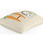 Embrace the allure and whimsey of spring with the Pillow Perfect Easter Indoor/Outdoor Reversible Lumbar Throw Pillow in Hop Natural. One side of the pillow features a string of dangling carrots, each tied with a green and white gingham check , and on the other, carrots, a cotton-tailed bunny bottom, and gingham-checked letter spell out the word "HOP." This playful pillow is perfect for spring or Easter decor, and will look adorable on an entry way bench or your favorite armchair. The plush recycled polyester fill insert will maintain the pillow’s shape for years to come. Spot clean or hand wash only as needed.