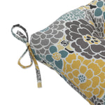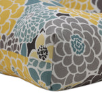 Brighten your porch or deck with the modern floral pattern of this large outdoor bench cushion. Its flowers are in full bloom in shades of yellow, gray and teal with white outlined petals. Fabric is durable and fade resistant. Additional features of this large outdoor bench cushion include tufted detailing, 14" ties and recycled polyester fiber fill with a sewn seam closure. Also suitable for indoor use.