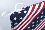 This set of two outdoor seat cushions is accented with a distressed Americana diagonal striped pattern. The printed stars and stripes in patriotic colors of red, white and blue, give this pattern a casual feel for any outdoor decor. Additional features of these outdoor seat cushions include rounded corners, 14" ties and recycled polyester fill with sewn seam closures. Also suitable for indoor use.