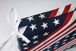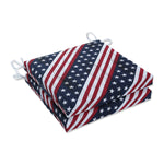 This set of two outdoor oversized seat cushions is accented with a distressed Americana diagonal striped pattern. The printed stars and stripes in patriotic colors of red, white and blue, give this pattern a casual feel for any outdoor decor. Additional features of these outdoor oversized seat cushions include square corners, 14" ties and recycled polyester fill with zippered closures for easy removal. Also suitable for indoor use.