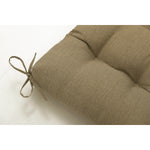 Neutral and simply luxurious, this outdoor bench cushion makes any outdoor space inviting. Its solid tan textured polyester fabric is durable and fade resistant, perfect for accenting decks and patios. Additional features of this outdoor bench cushion include tufted detailing, 14" ties and recycled polyester fiber fill with a sewn seam closure. Also suitable for indoor use.