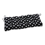 Riveting and timeless, the polka dot pattern of this outdoor bench cushion adds an exciting touch of elegance and playful energy to any outdoor area. In classic black and white polka dots, its fabric is fade resistant. Additional features of this outdoor bench cushion include tufted detailing, 14" ties and recycled polyester fiber fill with a sewn seam closure. Also suitable for indoor use.