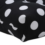 Riveting and timeless, the polka dot pattern of this large outdoor bench cushion adds an exciting touch of elegance and playful energy to any outdoor area. In classic black and white polka dots, its fabric is fade resistant. Additional features of this large outdoor bench cushion include tufted detailing, 14" ties and recycled polyester fiber fill with a sewn seam closure. Also suitable for indoor use.