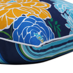 This set of two outdoor throw pillows features a large-scale floral reversing to an unbalanced stripe. Printed in bright shades of blue, yellow and green, these coordinating patterns can be placed on your outdoor furniture as companions or contrasting pieces. Additional features of these outdoor throw pillows include white contrast welt cords for a clean finish and recycled polyester fiber fill with sewn seam closures. Also suitable for indoor use.