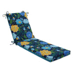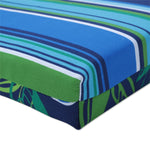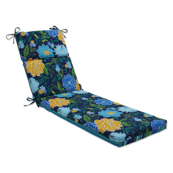 This outdoor chaise lounge cushion features a large-scale floral reversing to an unbalanced stripe. Printed in bright shades of blue, yellow and green, these coordinating patterns can be placed on your outdoor furniture as companions or contrasting pieces. Additional features of this outdoor chaise lounge cushion include 14" ties to secure the cushion to your furniture, square corners and recycled polyester fill with a sewn seam closure.