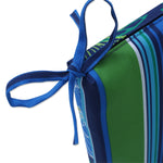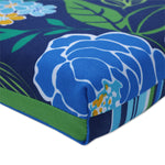 This set of two outdoor oversized seat cushions features a large-scale floral reversing to an unbalanced stripe. Printed in bright shades of blue, yellow and green, these coordinating patterns can be placed on your outdoor furniture as companions or contrasting pieces. Additional features of these outdoor oversized seat cushions include square corners, 14" ties and recycled polyester fill with zippered closures for easy removal. Also suitable for indoor use.