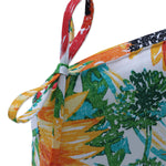 Bold bursts of sunflowers pop from this set of two outdoor seat cushions creating a refreshing look for your outdoors. Substantial blooms and foliage in vivid shades of yellow, orange, green, blue and pink pop from the crisp white ground. A soft distressing adds artist-intended imperfections and character. Additional features of these outdoor seat cushions include rounded corners, 14" ties and recycled polyester fill with sewn seam closures. Also suitable for indoor use.
