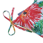 Bold bursts of sunflowers pop from this set of two outdoor tufted chair cushions creating a refreshing look for your outdoors. Substantial blooms and foliage in vivid shades of yellow, orange, green, blue and pink pop from the crisp white ground. A soft distressing adds artist-intended imperfections and character. Additional features of these outdoor tufted chair cushions include 14" ties and recycled polyester fiber fill with sewn seam closures. Also suitable for indoor use.