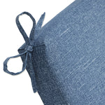 This outdoor chair cushion features a distinguished, textured solid. Printed in shades of blue, it easily coordinates with many patterns, colors and decor styles. A casual distressing adds artist-intended imperfections and character. Additional features of this outdoor chair cushion include square corners, 14" ties and recycled polyester fill with a sewn seam closure.