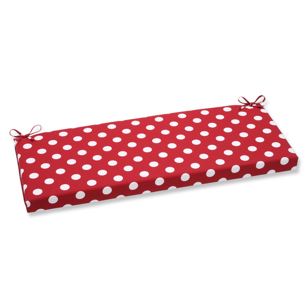 Riveting and timeless, the polka dot pattern of this outdoor bench cushion adds an exciting touch of elegance and playful energy to any outdoor area. In classic red and white polka dots, its fabric is fade resistant. Additional features of this outdoor bench cushion include square corners, 14" ties and recycled polyester fill with a zippered closure for easy removal. Also suitable for indoor use.