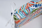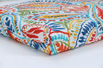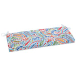 Give your patio or porch an intense splash of color with the hot paisley fabric pattern of this stylish outdoor bench cushion. Its bold print design is set on a white ground in bright shades of blue, green, orange, red and yellow, perfect spicing up your outdoor ensemble. Made of 100% polyester fade-resistant fabric. Additional features of this outdoor bench cushion include square corners, 14" ties and recycled polyester fill with a zippered closure for easy removal. Also suitable for indoor use.